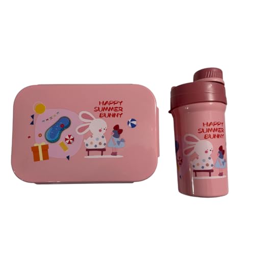 Generic - زمزمية اطفال + لانش بوكس اطفال مدرسى باشكال كرتونية متعددة اللون بينك