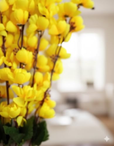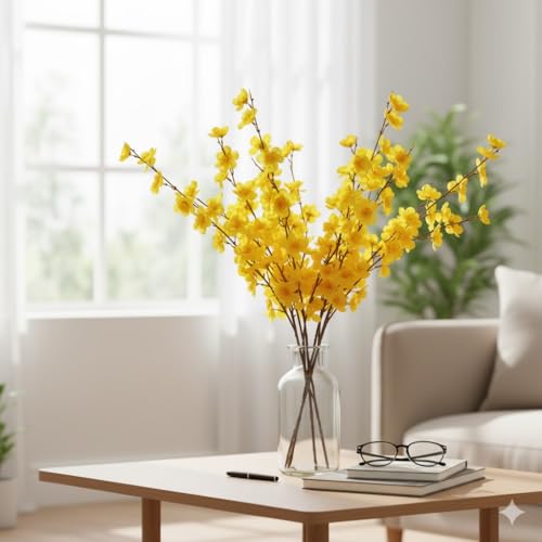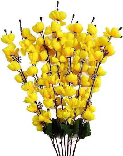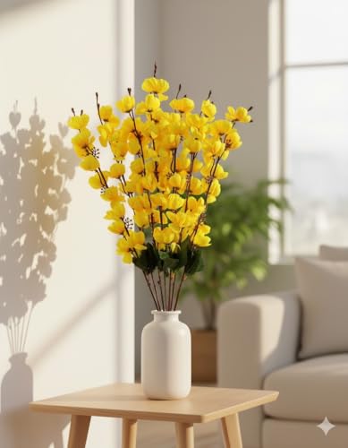 Generic - زهور المشمش الصناعية للمزهرية لتزيين المنزل باقة الكرز لديكور المكتب | بدون فازة لون أصفر