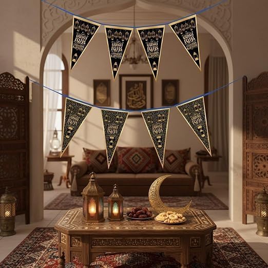 Generic - زينة رمضان مبارك، رايات إسلامية، راية مثلثة للتعليق خمات عاليه الجوده متعدد الالوانواشكال متنوعه