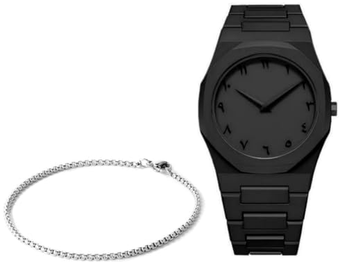 Generic - ساعة يد رجالي ضد الماء بتصميم انيق، ساعة كلاسيكية للرجال مناسبة كهدايا رجالي ساعه سودا بالكامل + سوار ستانلس ستيل للرجال من ولف انترناشونال، اكسسوارات، سلسلة فينيسية، رفيعة، فضي،
