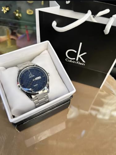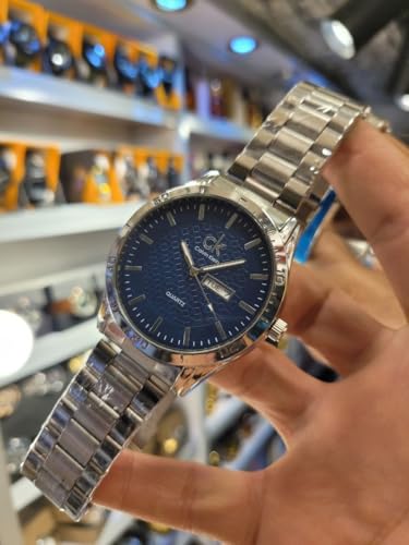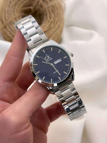 Generic - ساعة يد رجالي معدنية هاي كوبي عاليه الجوده ، قرص أزرق محشح، من الفولاذ المقاوم للصدأ لون ثابت،جميع الإخاط،مع عرض اليوم والتري،تتي في بوكس وشنطه ماركه الساعة يجعلها مناسبة هدايا