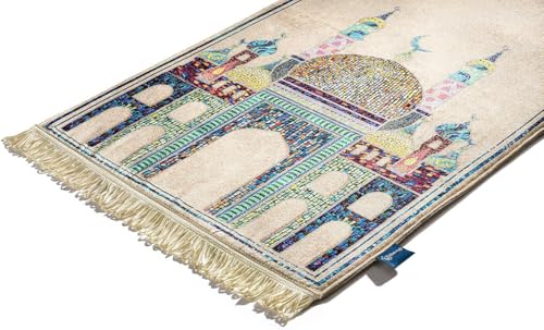- 【Three Layer Design】The rug features an innovative three layer design that combines a printed top layer with stylish colors that adds a touch to the room, and a foam midsole that provides superior comfort while sitting or praying, plus an insulating bottom layer that helps hold the mat on the floor to provide a steady and comfortable everyday experience.