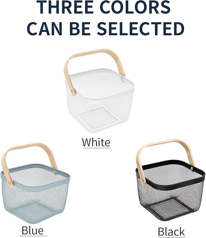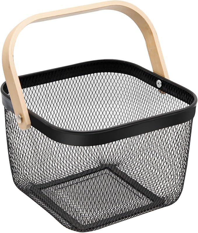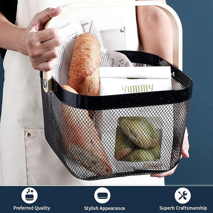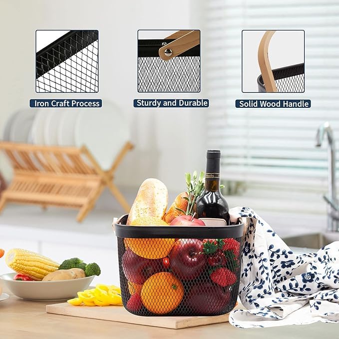 Generic - سلة نزهة مع مقبض سلة فاكهة للمطبخ صغير لون اسود، سلال تخزين شبكية سلكية متعددة الوظائف للنزهات الخارجية والتخزين المنزلي والكريسماس والحفلات واعياد الميلاد