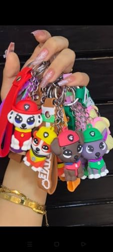 عام - سلسلة مفاتيح باو باترول للأطفال، ٦ قطع، متعددة الألوان، مع دلايات شخصيات الكرتون