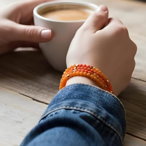 - مصنوعة من حبات خرز الكريستال بألوان البرتقالى الفاتح والبرتقالي الغامق