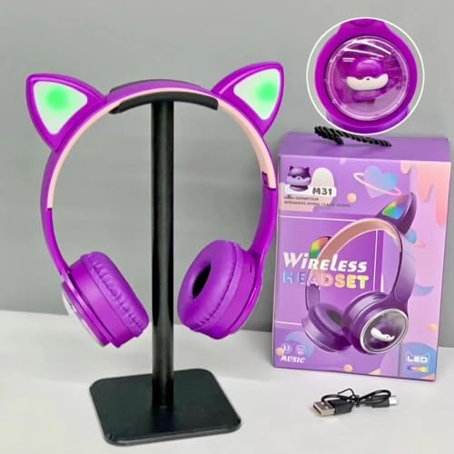 سماعة راس بلوتوث M-31 بصوت عالي الدقة ستيريو مع اضاءة ار جي بي – تدعم بطاقة تي اف وراديو اف ام – تصميم مريح ومميز للاطفال (وردي) (ارجواني)