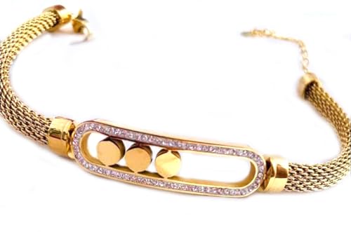 Generic - سوار من استانلس ستيل ، مسرة بكرستلات صغيرة, لون ذهبى, لون ثابت لا تتتغير مع بمرور الوقت