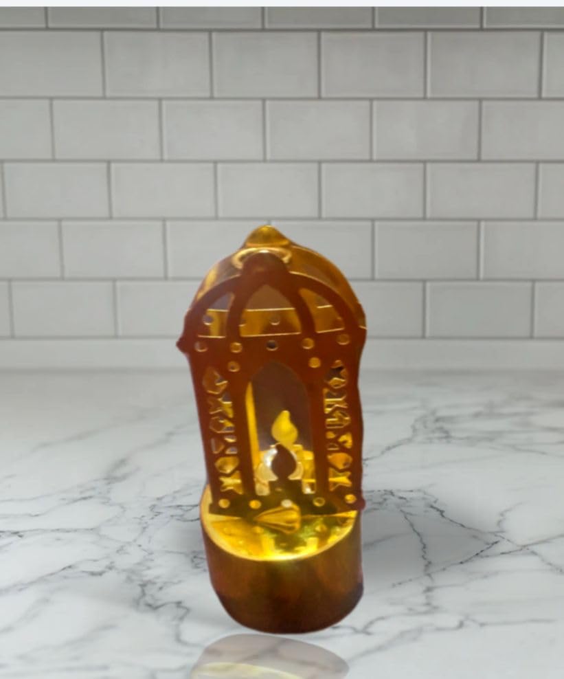 - النوع: شمعة الكترونية المادة معدن في بلاستيك اللون: أصفر دافئ الشكل: هلال ونجمه