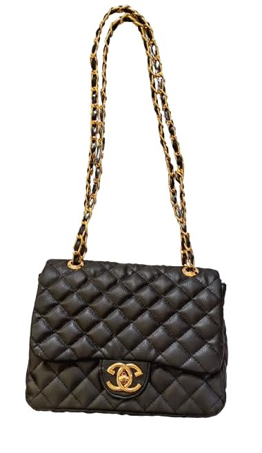 شنطة صغيرة -حريمى/بنات - شيك -حزام كتف سلسلة - جلد كابوونيه -للسهرة و الخروجات- مقاس 23 * 18 * 9 - اسود