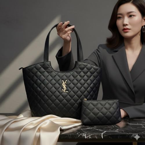 شنطة نسائية جلد فاخر يد و كتف و كروس متعددة الاستخدام – تصميم كابتونيه مبطن راقي مع محفظة صغيرة ، حقيبة أنيقة عملية مثالية للالعمل والاستخدام اليومي