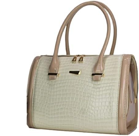 شنطة يد حريمى - تصميم شيك جدا - للسهرة و الخروج - مقاس 32 * 27 - جلد لازر مغطى بطبقة البولي يوريثان مقاوم للماء والبقع 979 - اللون بيج