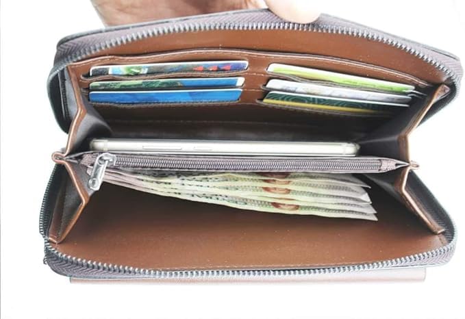 شنطة يد مستورده للجنسين - جيب خارجي بكراته لجميع بطاقات البنكية - بسحاب قوي خامة ممتازه وجيب داخليى - بنى