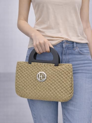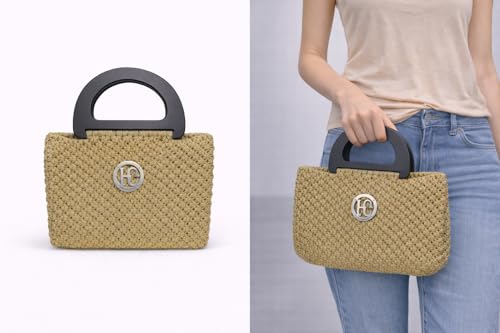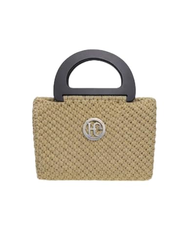 Generic - شنطة يد نسائية ذهبى مقبض علوي سوريه مقبض خشبي مصنوعه يدويا