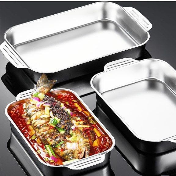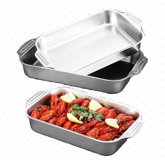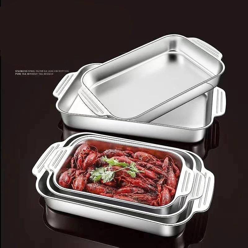 - Stainless steel rectangular oven tray or casserole smooth surfaceAnti-sticking..scald and microwave oven
