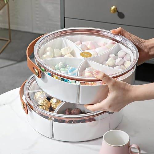 - PREMIUM QUALITY: Covered Taste Tray Is Made Of Food Grade Polypropylene (PP) + PET, Superior Quality, Very Durable Plastic, BPA Free, Break Resistant, Safe And Healthy To Put Any Food You Want. Easy to clean Handheld dry fruit tray with lid and durable handle for long time use. ERGONOMIC HANDLE: this multi-purpose large serving set includes 5 removable individual dividers, the base can be used as a large food storage container. Tray has a handle so you can easily carry this divided plastic container at any time and pick up what you need (cookies or snacks) when you need to go out or picnic.