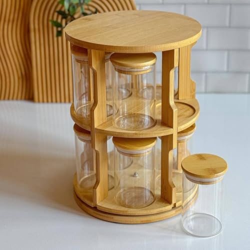 - تصميم عصري: استاند دوار من خشب البامبوالوصول البرطماناستاند دوار طبيعي من خشب البامبو يسهل الوصول لكل البرطمانات.
