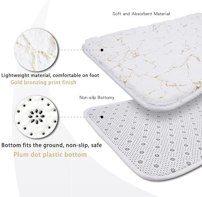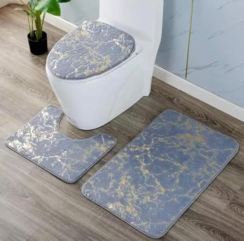 H-Home - طقم حمام مضاد للانزلاق قابل للغسل رمادى طباعة ذهبى