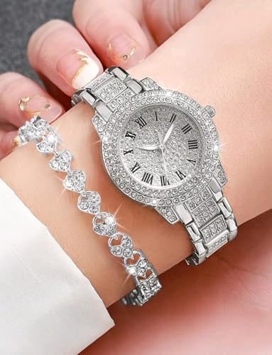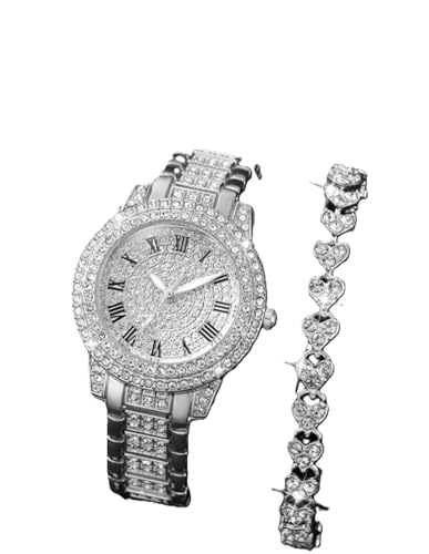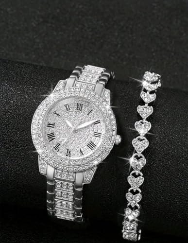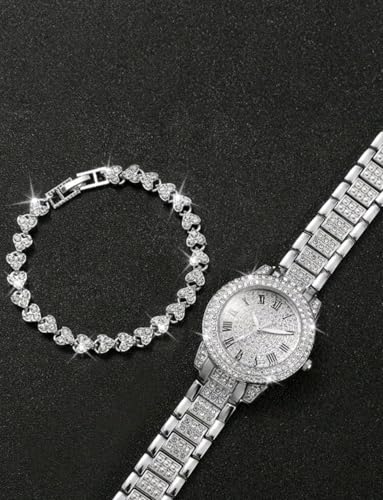 Generic - طقم مكون من قطعتين من ساعات الكوارتز النسائية الكلاسيكية الأنيقة مع سوار أنيق