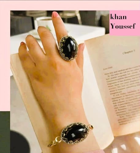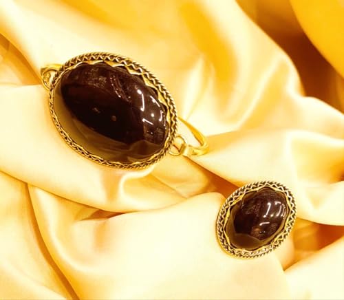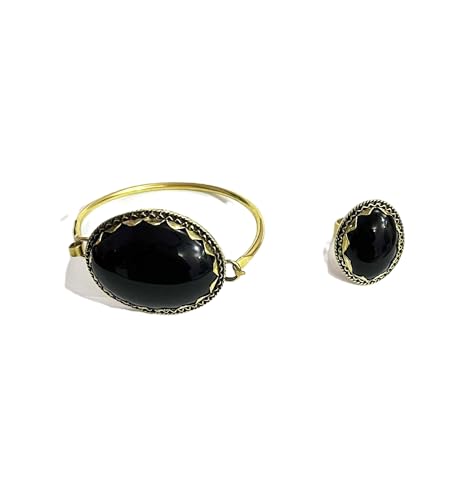 Generic - طقم نحاس اسود عريضه وخاتم فري سايز ومطعم باحجار العقيق الاسود