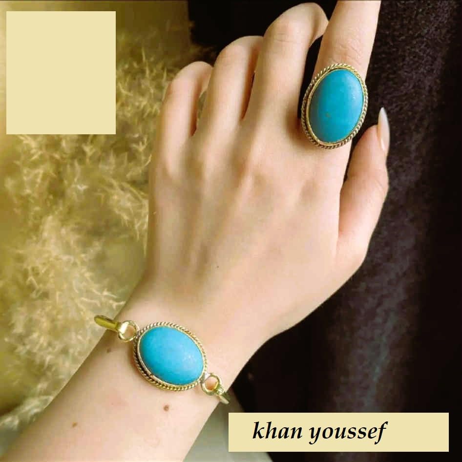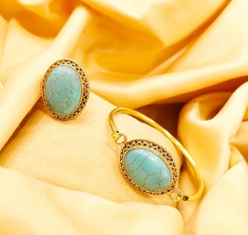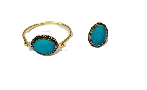 Generic - طقم نحاس اسود وخاتم ومزين باحجار الفيروز