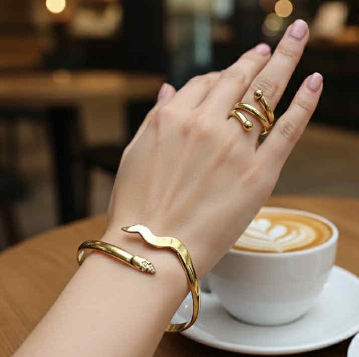 Generic - طقم نحاس أسوره وخاتم فري سايز (موديل الثعبان)