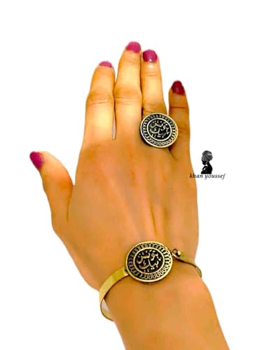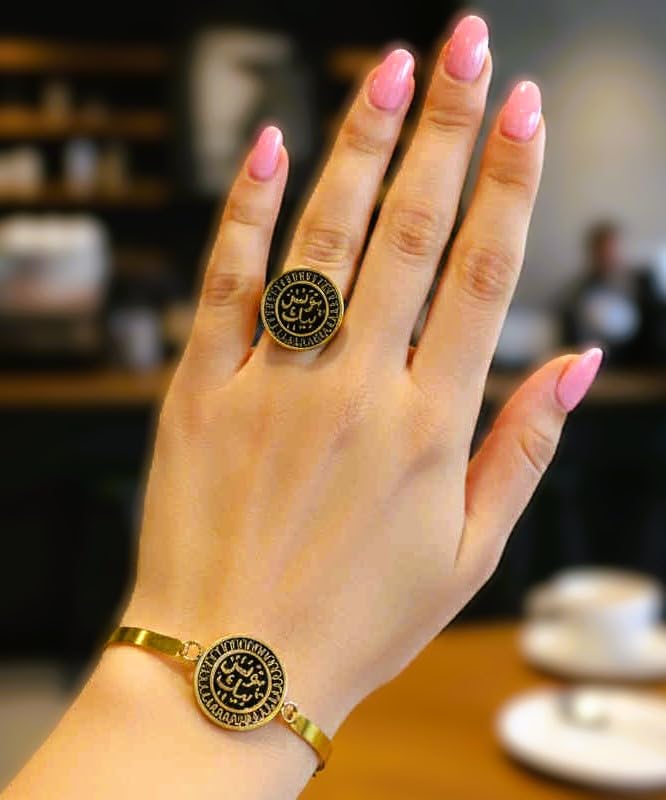 Generic - طقم نحاس اسود وخاتم فري سايز وكتابه (بتونس بيك)