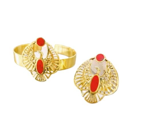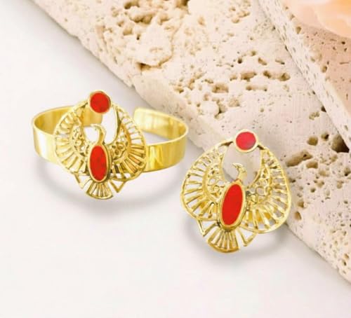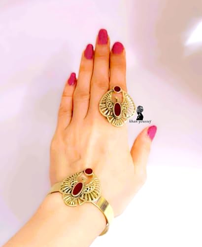 Generic - طقم نحاس فرعوني مميز أسورة وخاتم فري سايز (أحمر)