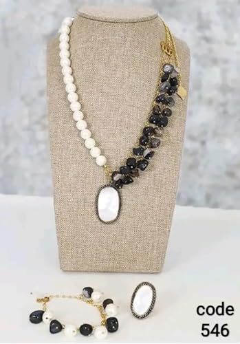 Generic - طقم نساى من كسر العقيق والاللؤلؤ الصدف والالنحاس