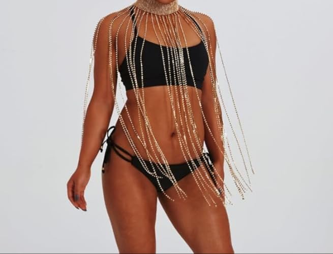 Generic - عباية سلسلة الجسم بصوص دهبى بكيني للالبحر والمناسبات