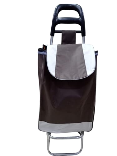 Generic - عربة تسوق يدوية قابلة للطي بعجلات كبيرة – حقيبة تسوق عملية وخفيفة الوزن (بني)