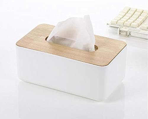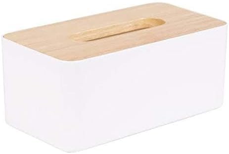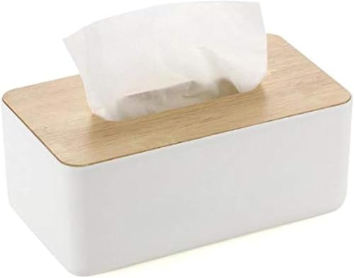 Generic - علبة مناديل بلاستيك بغطاء خشبى ابيض اللون