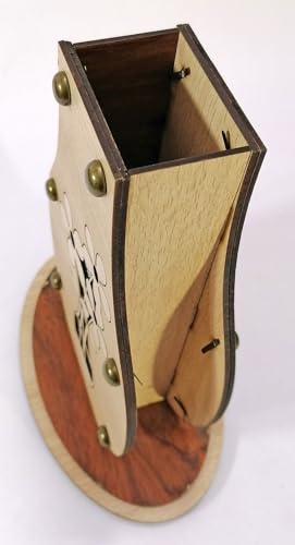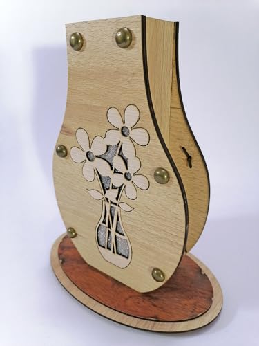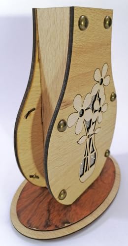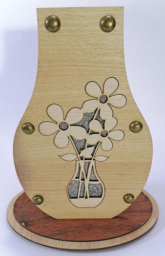 Generic - فازة ورد خشب ديكور منزلي لون بيج و القاعدة بني فاتح ورده رصاصي وزهرية زينة