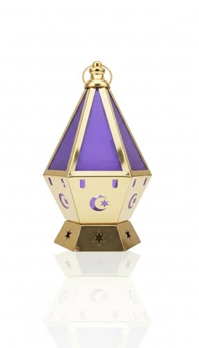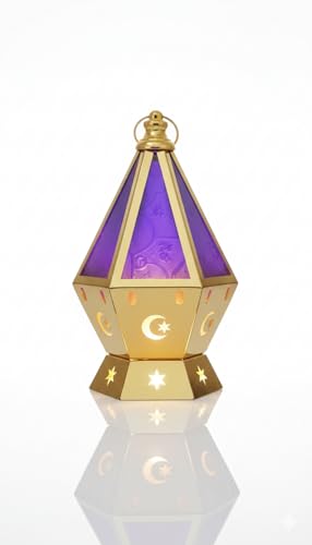 Generic - فانوس رمضان زجاج معدني مقاس كبير ، بتصميم اسلامي ذهبي وحله شيل دهبى تصميم فريد نوعه للديكور زجاج ازرق من الاعلى ومعاه وحده اضاه خمات عاليه الجوده