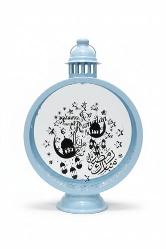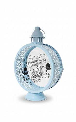 Generic - فانوس رمضان لون لبنى معدن مزخرف مع شمعة ليد للمنزل خمات عاليه الجوده فانوس شموع عتيق للمنزل والمكتب مزخرف بكتابه رمضان كريم وصورة فانوس ديكور الداخلي والخارجية