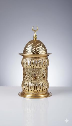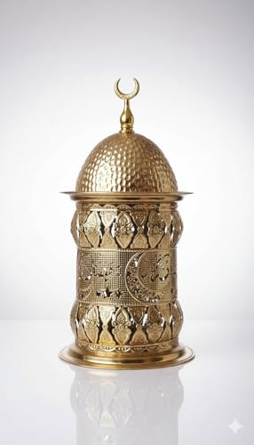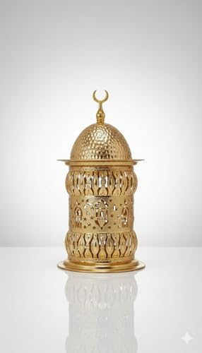 Generic - فانوس رمضان معدني بحله لون ذهبي ديكور للمنزل باضاه بتصميم مميز رائع خمات عاليه الجوده