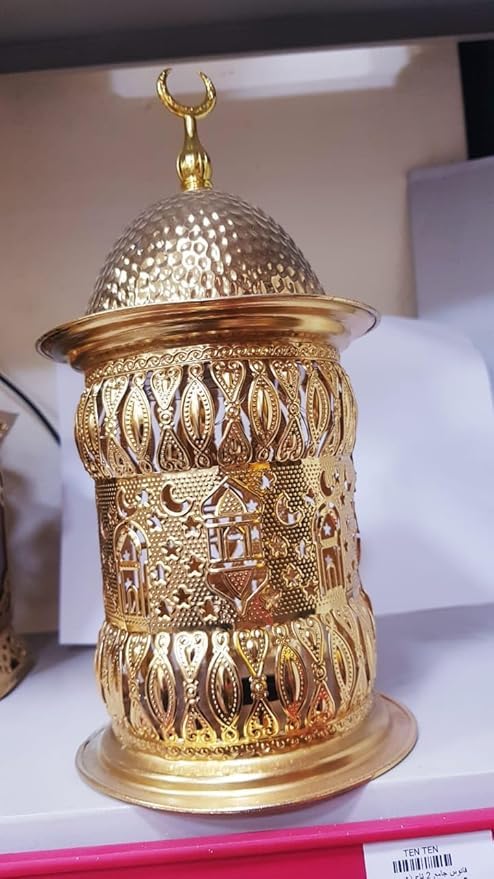Generic - فانوس رمضان معدني،بحلقه لون ذهبي مع وحده اضائه ديكور للمنزل باضائه بتصميم مميز ورائع خمات عاليه الجوده