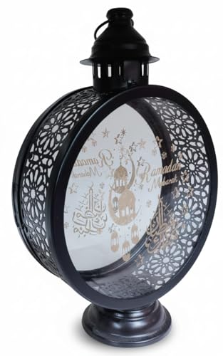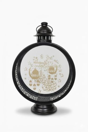 Generic - فانوس رمضانمعدن وزجاج مع شمعة ليد للمنزل فانوس شموع عتيق للمنزل والمكتب مزخرف بكتابه رمضان كريم وصوره فانوس والديكور الداخلي والخارجي،بلون اسودخمات عاليه الجوده