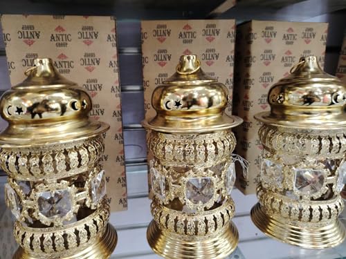 Generic - فانوس رمضان معدن لون ذهبي كريستال مزخرف مرفق اضاءة تعمل بالبطاريات