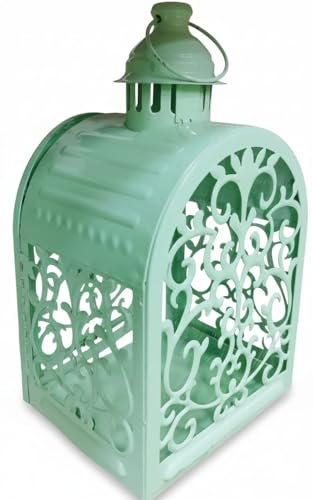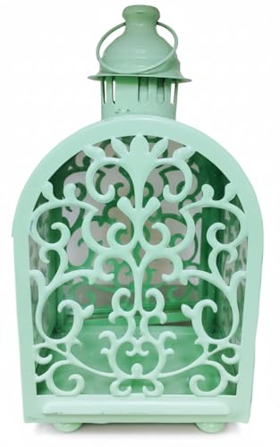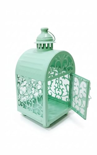 Generic - فانوس رمضان معدن مع شمعة ليد للمنزل خمات عاليه الجوده فانوس شموع عتيق للمنزل والمكتب مزخرف ومخرج من الجوانب فانوس ديكور الداخلي والخارجية لون اخضر