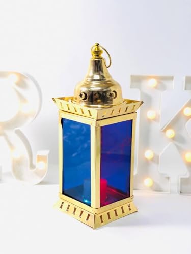 Generic - فانوس قصر الشوق بزجاج الوان اللي بينورو أغاني رمضان الذهبي المقاس: ٢٧ سم