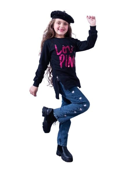 Generic - فستان بناتي اسود به رسمه خامه ديجونيل (قطن)