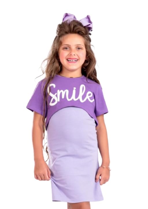 Generic - فستان بناتي من قطعتيين ( القطعه الاولي فستان موف فاتح والقطعه الثانيه توب موف غامق )