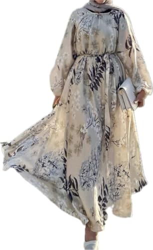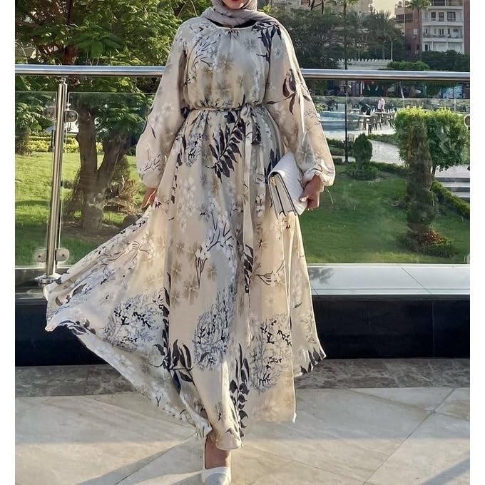 Generic - فستان كاجوال ماكسي مصنوع من الساتان برقبة ماندرين، للنساء، تصميم فضفاض، أكمام طويلة، متعدد الألوان، مقاس فور إكس لارج