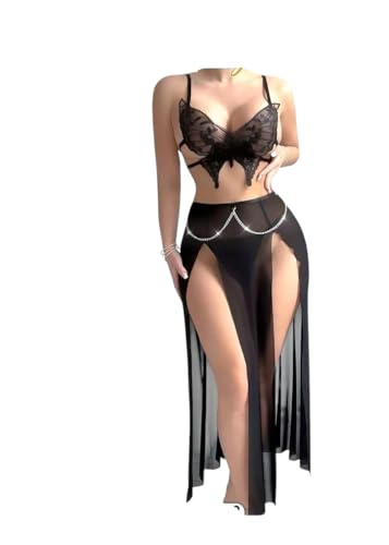 Generic - قميص نوم لانجري بفتحات وصدر بتصميم فراشة من لاكي بوي - بيبي دول شفاف بحمالات رفيعة رائع للحظات الخاصة