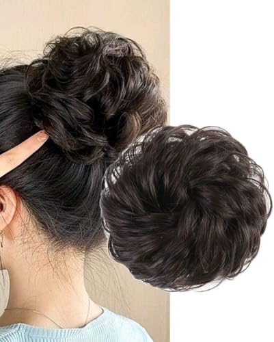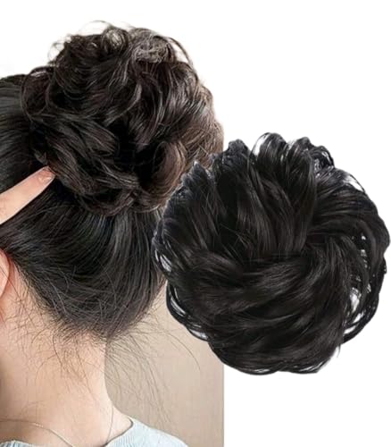 Generic - قطعة واحدة من وصلة الشعر الصناعى على شكل الكعكة المرنة والمموجة مناسبة للنساء اللون : أسود