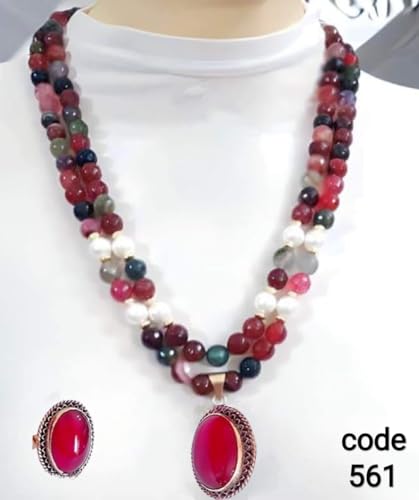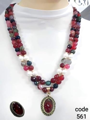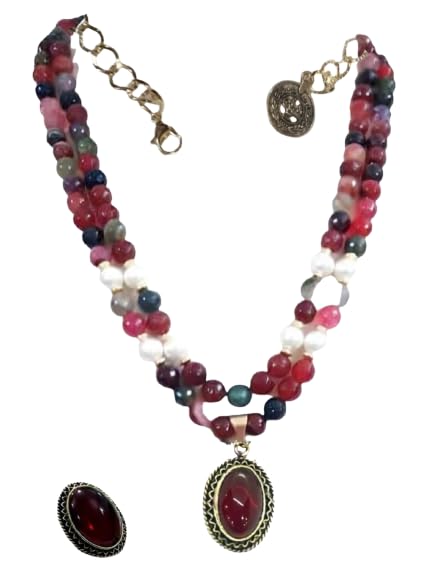Generic - قلادة نساى من العقيق الطبيعى والالنحاس مع خاتم