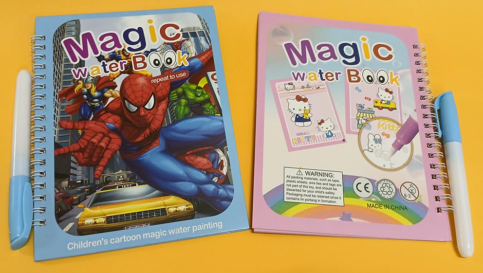 Generic - كتاب مائي سحري وقلم تلوين لإظهار الصور والرسومات الكرتونية الرجل العنكبوت والقطة كيتي
