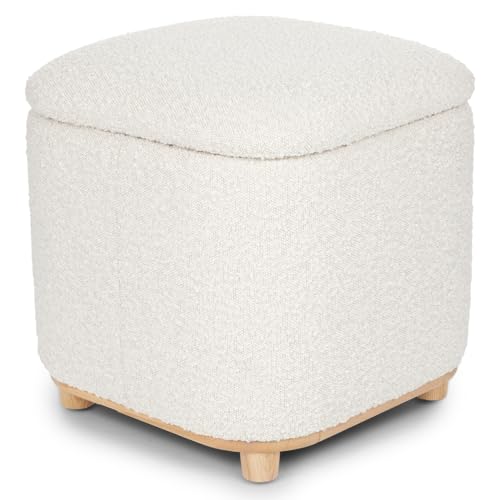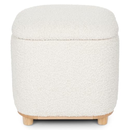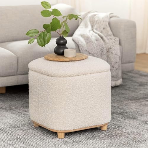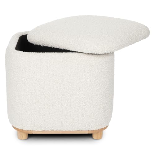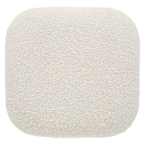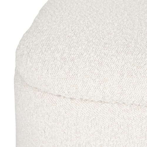 Generic - كرسي بف دائري مبطن قماش بوكليه ناعم بغطاء متحرك – مقعد مريح بقاعدة خشبية لغرفة المعيشة وغرفة النوم – تصميم مودرن أنيق بلون بيج يناسب جميع الديكورات