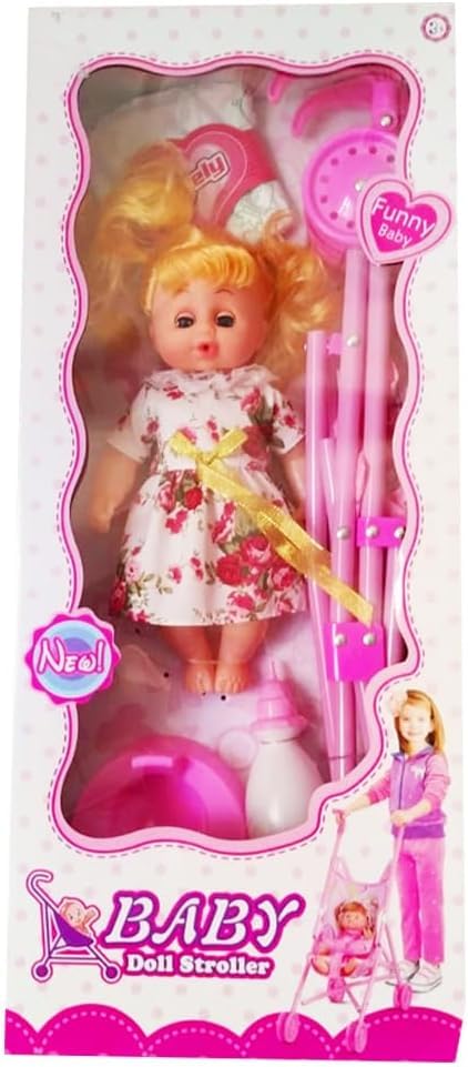 Generic - لعبة عروسة الطفلة الرضيعة تبكي و تقول بابا و ماما معها حفاضات وسترولر وببرونة وبوتى بلاستيك عالى الجوده مناسبه للبنات