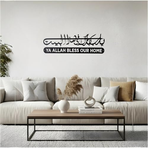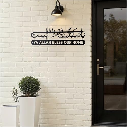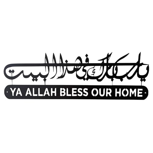 USIGNA - لوحة معدنية جدارية “ يا رب بارك هذا البيت ” – ديكور إسلامي فاخر – تصميم حديث من المعدن الأسود – مثالي لغرف المعيشة، المداخل، المكاتب والمساجد